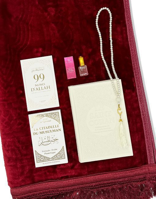 Ce coffret Coran « Red White » ne passera pas inaperçu et réjouira certainement la personne qui le recevra. Voici une super idée de coffret cadeaux sur le thème islam pour les femmes. Pour une mère, une sœur ou l’épouse et pour différents types d’occasions (fêtes, mariages, etc.)