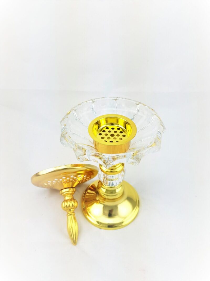 Cet Encensoir Or est à utiliser avec un charbon pour brûler l’encens. Un petit compartiment avec réservoir pour stocker les morceaux d’encens.