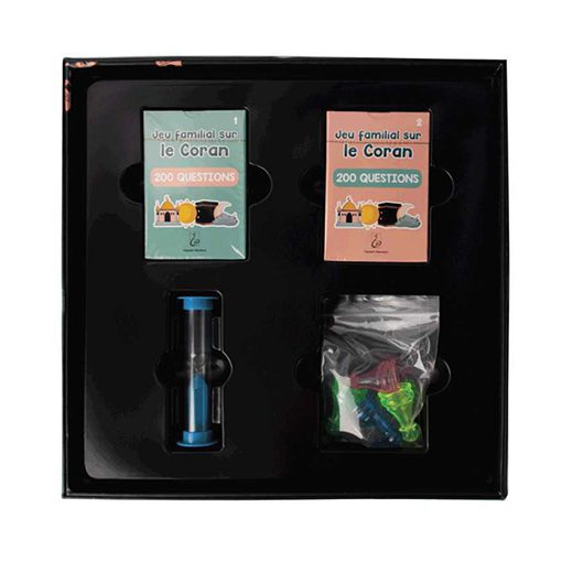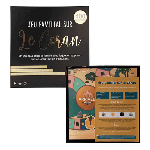 Pour renforcer les liens familiaux, apprendre des choses sur le Coran et s’amuser en même temps, avec le Jeu familial sur le Coran c’est possible. Le jeu est adapté aux enfants à partir de 8 ans, mais aussi aux adultes.Jouez à deux, à plusieurs ou formez plusieurs équipes. Idéal pour la maison, la mosquée, l’école ou entre amis. Jouez à deux, à plusieurs ou formez plusieurs équipes. Idéale pour la maison, la mosquée, l’école ou entre amis.