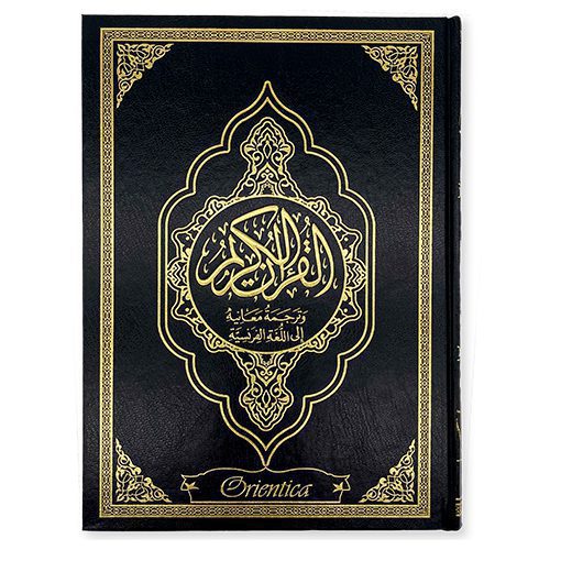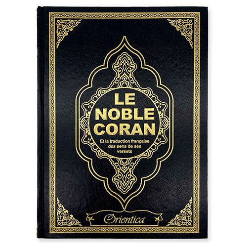 Le Noble Coran et la traduction française du sens de ses versets (bilingue français/arabe) – Grand format – Couverture rigide similicuir de luxe – Couleur Noir doré