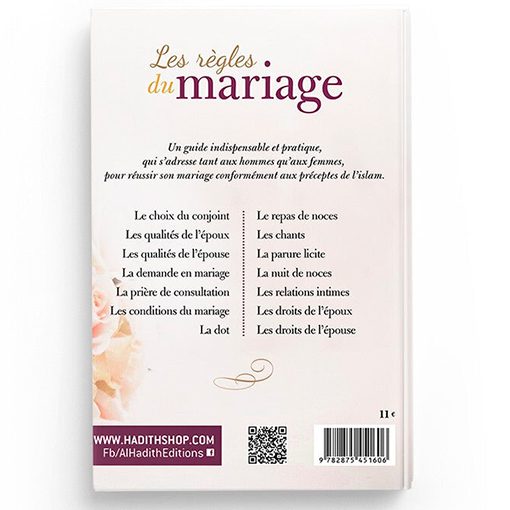 Les règles du mariage : Un livre incontournable pour réussir son mariage selon le Coran, la Sunna et les avis des grands savants contemporains repris sous formes de fatwas et conseils. Un véritable guide du mariage islamique, pour apprendre tous les points essentiels relatifs aux préceptes et aux bienséances de cette noble adoration qu’est le mariage.
